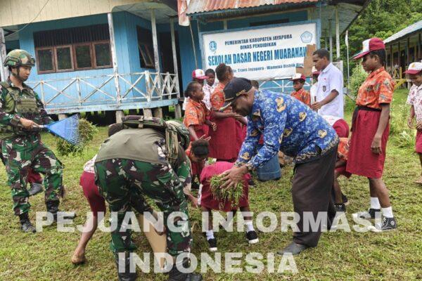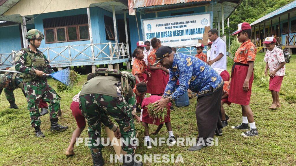 Muaranawa, –Sebagai wujud kepedulian terhadap kebersihan dan kesehatan lingkungan pendidikan, Satgas Yonif 521/DY melaksanakan kegiatan karya bakti di SDN Muaranawa, Distrik Airu, Kabupaten Jayapura, Papua. (20/2/2026). Kegiatan ini bertujuan menciptakan lingkungan sekolah yang bersih, sehat, dan nyaman bagi para siswa dalam menimba ilmu. Dalam kegiatan tersebut, Personel Satgas bersama para guru dan siswa bergotong royong…