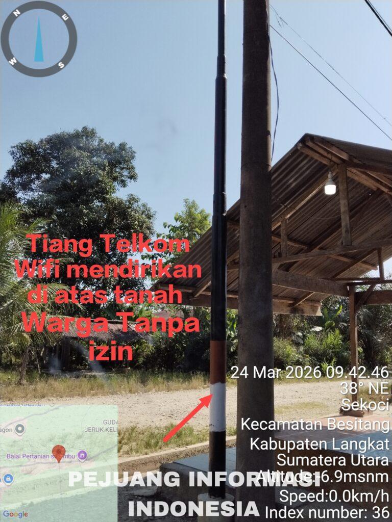 Langkat, Sumatera Utara – Pemasangan tiang besi menyerupai tiang milik operator telekomunikasi di wilayah Sekoci, Kecamatan Besitang, Kabupaten Langkat, menuai sorotan tajam. Pasalnya, tiang tersebut diduga berdiri di atas tanah milik warga tanpa izin yang sah, sehingga berpotensi melanggar hukum dan hak kepemilikan. Warga berinisial AB, pemilik sah tanah tersebut, dengan tegas meminta pihak…