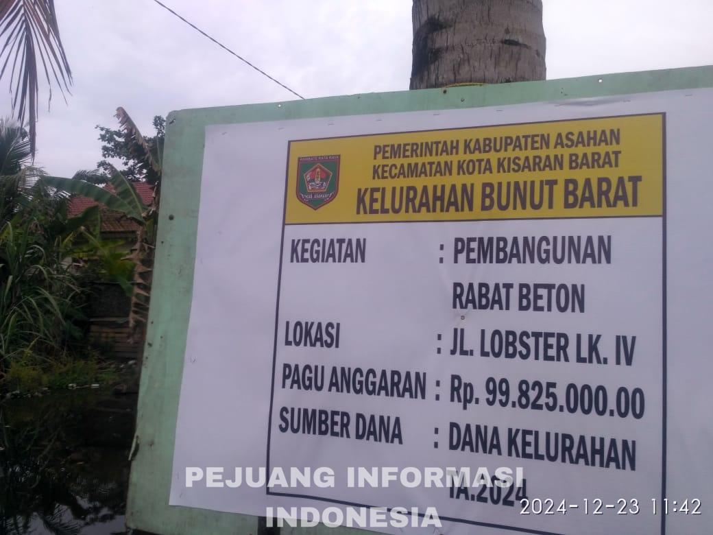 Sumut-Kota Kisaran Barat(Asahan)_ Sejalan desas-desus seliweran adanya giat yang disangsikan menyimpang terjadi untuk Pembangunan Jalan Rabet BunBar(Rabat Beton Bunut Barat) Kecamatan Kota Kisaran Barat Kabupaten Asahan Provinsi Sumut(Sumatera Utara) yang didengar oleh kru media ini melalui penuturan Masyarakat(23/12).
