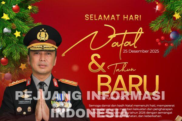 Jakarta – Kepala Divisi Humas Polri, Irjen Pol. Dr. Sandi Nugroho, S.I.K., S.H., M.Hum., menyampaikan ucapan Selamat Hari Natal 25 Desember 2025 dan Selamat Tahun Baru 1 Januari 2026 kepada seluruh umat Kristiani serta seluruh masyarakat Indonesia. Dalam pesannya, Irjen Pol. Dr. Sandi Nugroho berharap agar damai dan kasih Natal senantiasa memenuhi hati setiap…