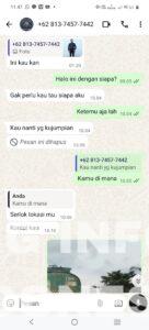 Teror bermula saat nomor WhatsApp 0813-7457-7442 menghubungi awak media dengan nada kasar dan intimidatif. Yang mengejutkan, peneror mengirimkan ulang foto gudang yang sebelumnya telah ditayangkan ke publik, seolah memberi pesan ancaman tersembunyi.