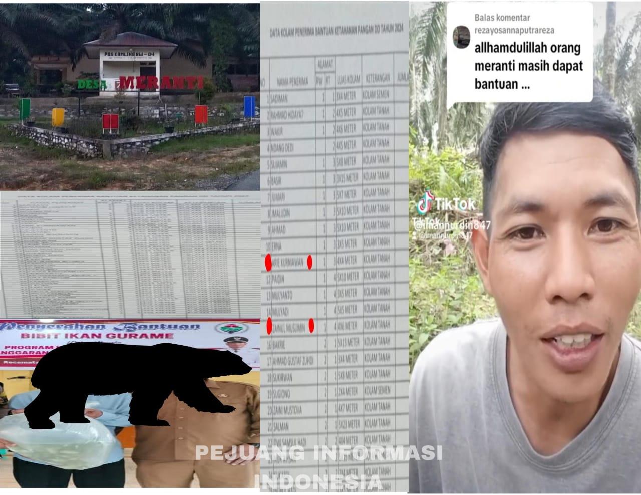 Pelalawan-Riau(21/12/2024)Sebuah unggahan Viral di media sosial Tik-tok yang berasal dari akun “Imannrudin847” mengungkapkan Keluhan masyarakat Terkait pengelolaan Bantuan Sosial di Desa Meranti, Kecamatan Pangkalan Kuras, Kabupaten Pelalawan, Provinsi Riau. Unggahan Tersebut menyebutkan Fenomena yang Mencurigakan Terkait Pemberian Bantuan oleh Pemerintah Desa tersebut.
