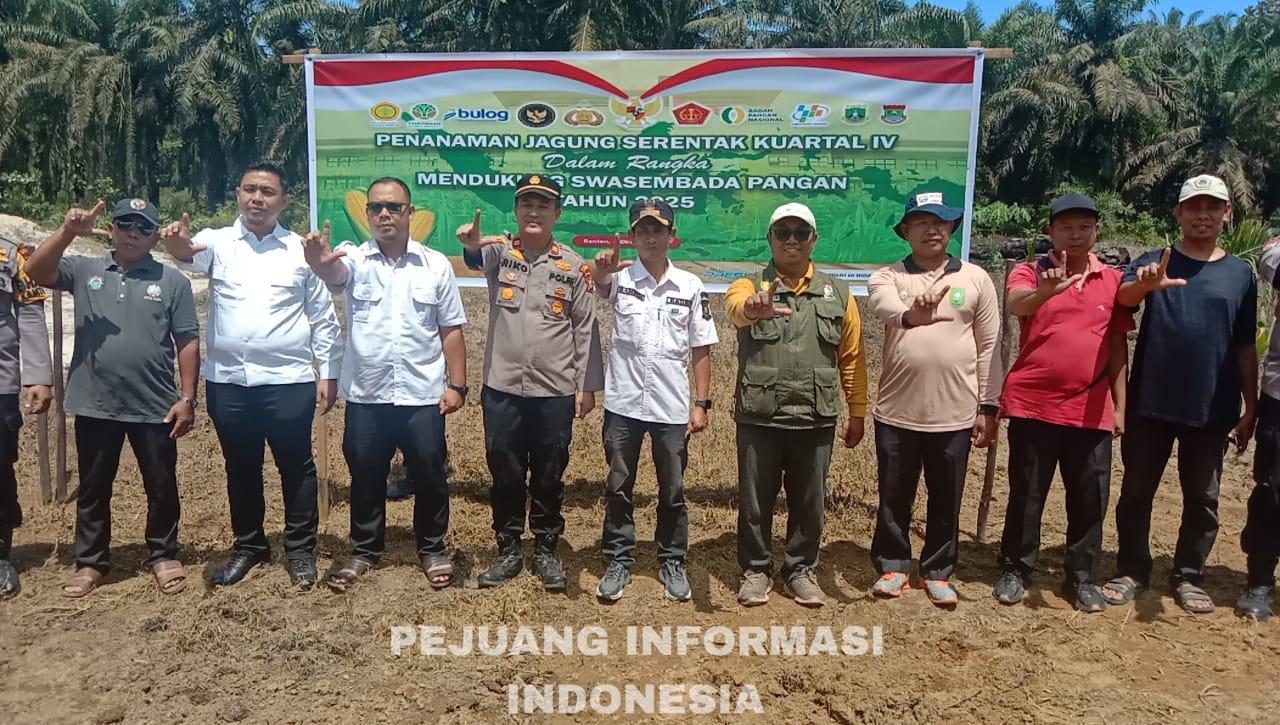 Rabu, 8 Oktober 2025 | Bukit Kemuning, Tapung Hulu, kabupaten Kampar, provinsi Riau- Dalam upaya mendukung program SwaseMBada Pangan Nasional Tahun 2025, Gugus Tugas Polri di Bidang Ketahanan Pangan melaksanakan kegiatan Penanaman Jagung Serentak Kuartal IV di Desa Bukit Kemuning, Kecamatan Tapung Hulu, Kabupaten Kampar, Provinsi Riau, Rabu (8/10/2025).