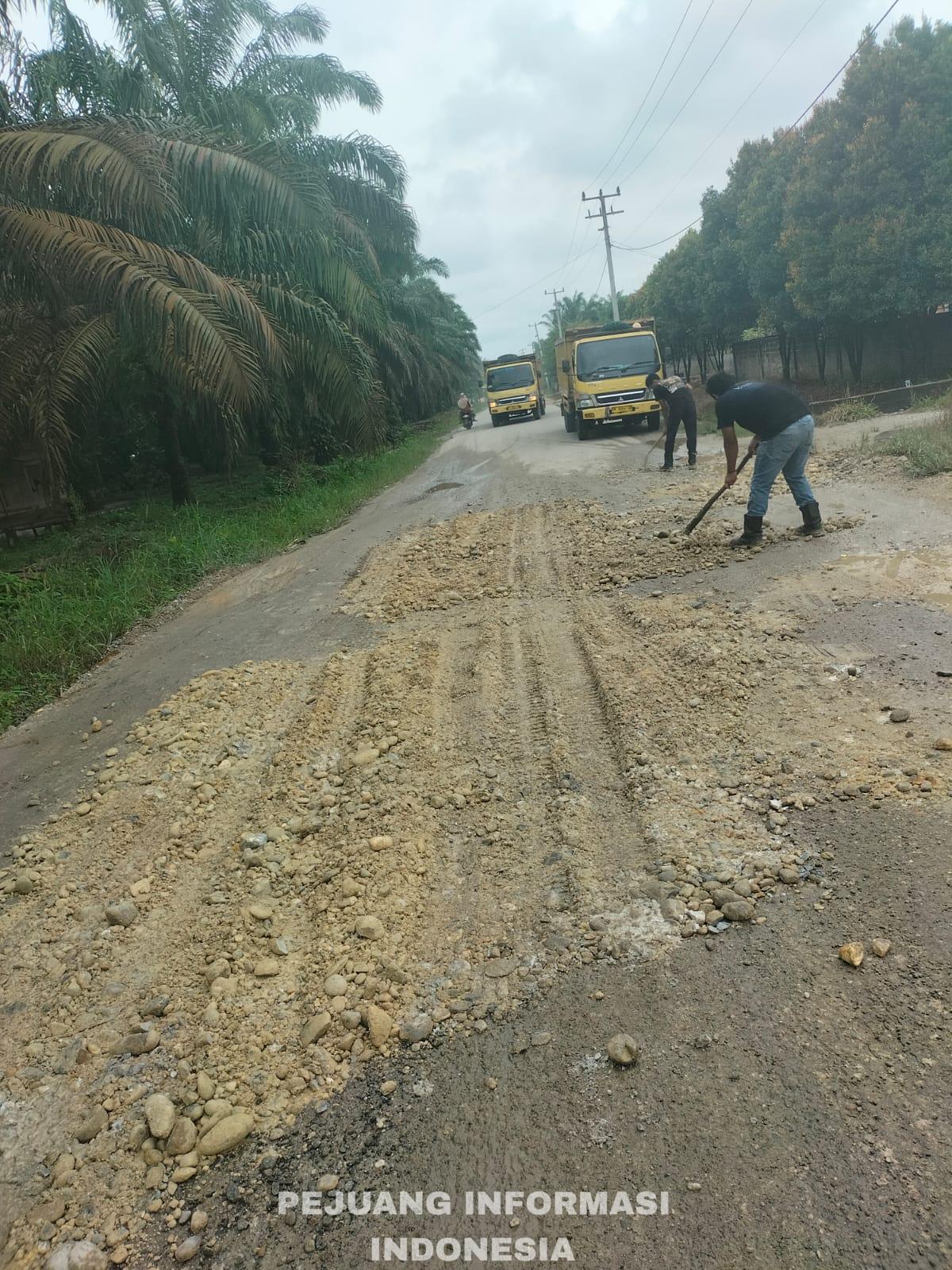 Terpantau di lokasi, sejumlah alat berat seperti cold diesel yang bermuatan sertu (pasir dan batu) digunakan untuk meratakan jalan yang berlubang. Beberapa karyawan perusahaan turut serta dalam pengerjaan tersebut hingga perbaikan selesai.